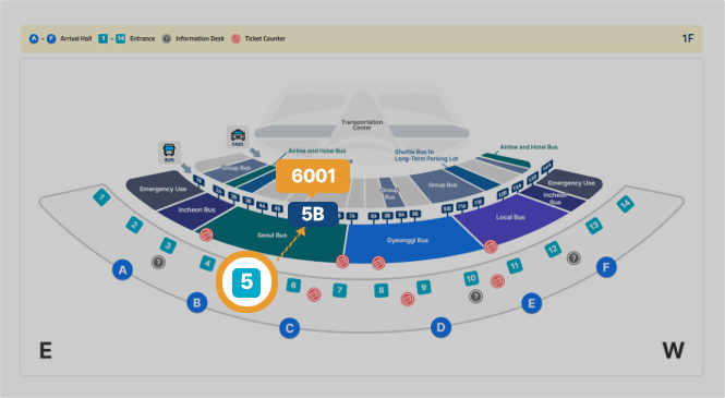 At Terminal 1, bus tickets and related information are available at ticket booths inside the terminal (next to exits 4 and 9) and outside (near exits 4, 6, 7, 8, 11, and 13),